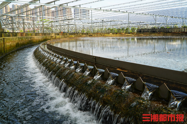 三湘都市報記者在現場看到,巨大的圓形水池被分成了內外兩環,外環是夾雜了活性污泥的水體,內環則是向外涌出的一股股清澈水體,內環表面還有一個緩緩轉動著的刮吸泥機,協助排除失去了活性的污泥。
