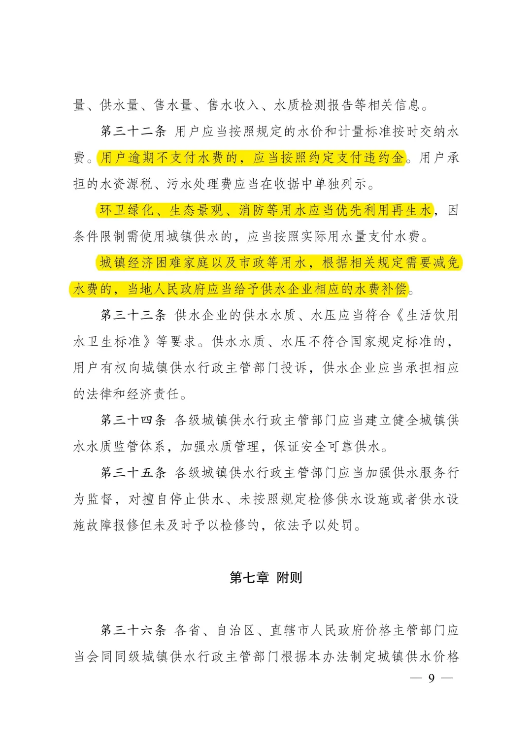 答:兩個《辦法》的修訂出臺,有助于進一步規范城鎮供水價格管理,保障供水、用水雙方合法權益,促進城鎮供水事業健康發展,節約和保護水資源。考慮到我國地域廣闊,不同地區水資源稟賦條件、經濟發展水平、社會承受能力等情況差異較大,兩個《辦法》對完善城鎮供水價格機制作出了框架性要求,一些具體參數設定和指標考核等需要各地區結合當地實際進一步細化明確,各地應當制定出臺具體辦法或實施細則。